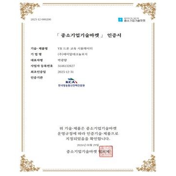 중소기업기술마켓 인증기술(제품) 지정(VR 드론 교육 시뮬레이터)