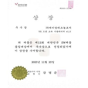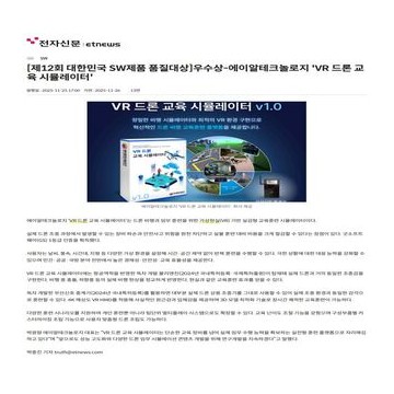 제12회 대한민국 SW제품 품질대상 우수상 선정(VR 드론 교육 시뮬레이터 v1.0)