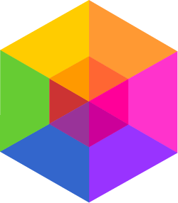 색이 다른 삼각형들로 이루어진 정육각형 형태의 심볼은